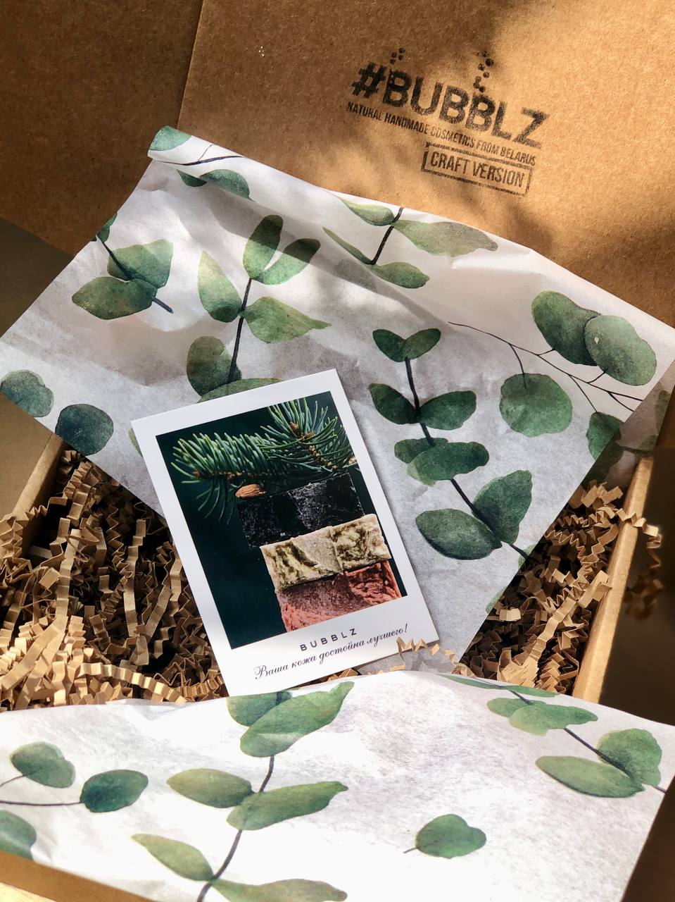 Минималистичный стиль упаковки позволяет с акцентировать внимание к содержимому. Внутри бокса можно разместить тщательно подобранные продукты натуральной косметики #BUBBLZ, которые привлекательны внешне, а главное полезны для красоты и и здоровья вашей кожи.