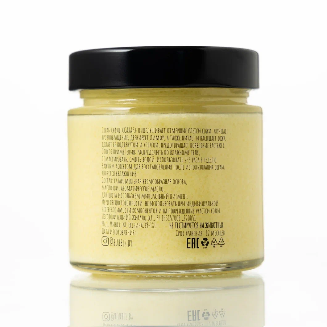 Скраб для тела от #BUBBLZ изготавливается из натуральных ингредиентов, что делает его безопасным для кожи и сводит к минимуму риск раздражения или аллергических реакций. Тающие частички сахара мягко и нежно удаляют ороговевшие клетки и загрязнения, стимулируют обновление тканей и улучшают цвет и текстуру кожи. Регулярное использование скраба сделает вашу кожу гладкой, мягкой и шелковистой. В дополнение, скраб станет приятной находкой для тех, кто ценит роскошные и притягательные ароматы.