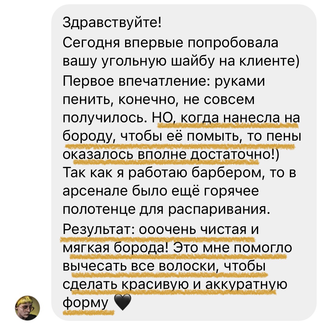 Дополнительным плюсом угольной шайбы является её легкий скрабирующий эффект. Мельчайшие частички натурального древесного угля помогают более глубоко очистить поры и удалить омертвевшие клетки кожи, оставляя кожу здоровой и увлажненной, а волосы бороды мягкими и ухоженными. Угольная шайба отлично подойдет для проблемной кожи, склонной к высыпаниям. Имеет соблазнительный и чистый мужской аромат смеси серой амбры, сандала, ириса и листьев фиалки, который доставляет отдельное удовольствие во время использования.