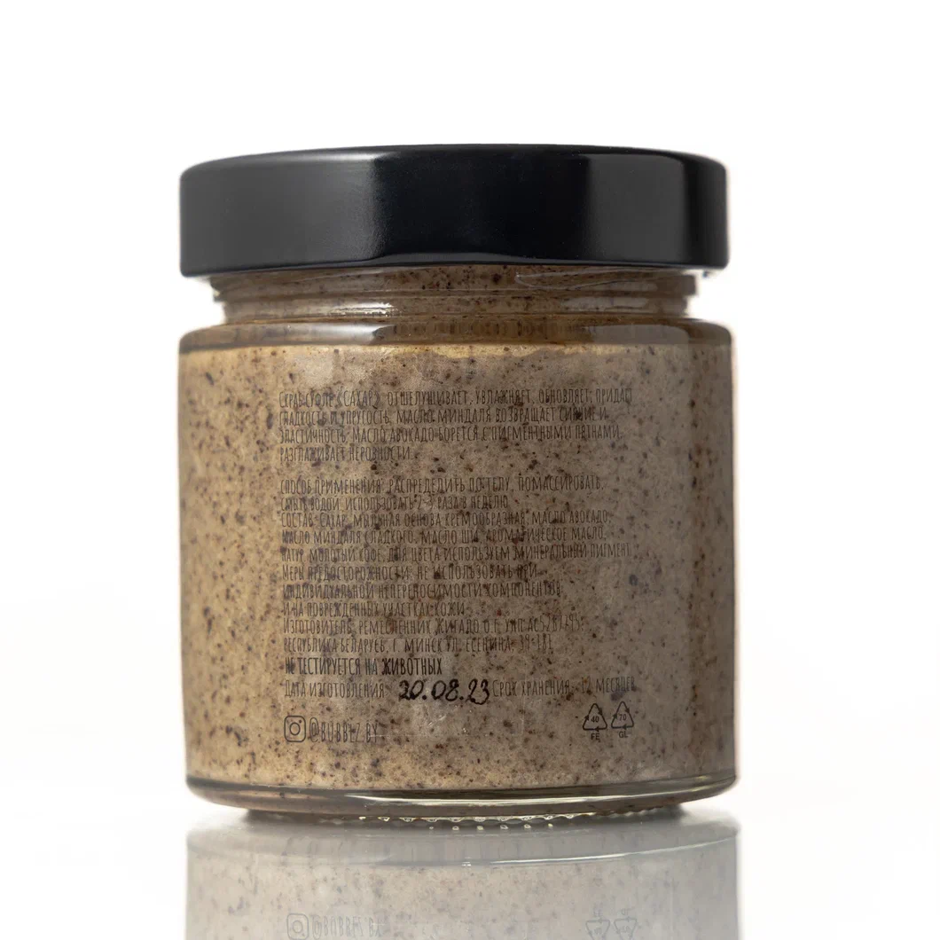 Скраб для тела от #BUBBLZ изготавливается из натуральных ингредиентов, что делает его безопасным для кожи и сводит к минимуму риск раздражения или аллергических реакций. Тающие частички сахара мягко и нежно удаляют ороговевшие клетки и загрязнения, стимулируют обновление тканей и улучшают цвет и текстуру кожи. Регулярное использование скраба сделает вашу кожу гладкой, мягкой и шелковистой. В дополнение, скраб станет приятной находкой для тех, кто ценит роскошные и притягательные ароматы.